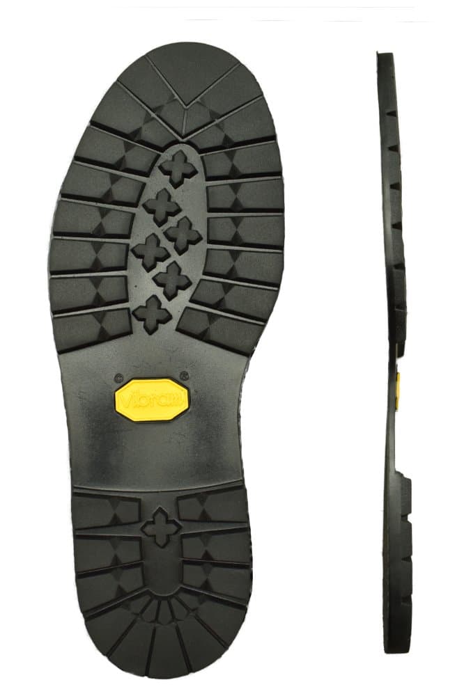 A casual outdoor lug sole from Vibram. Dimensions measure as 15 iron forepart and 21 iron heel. Available in black, sold by the pair.