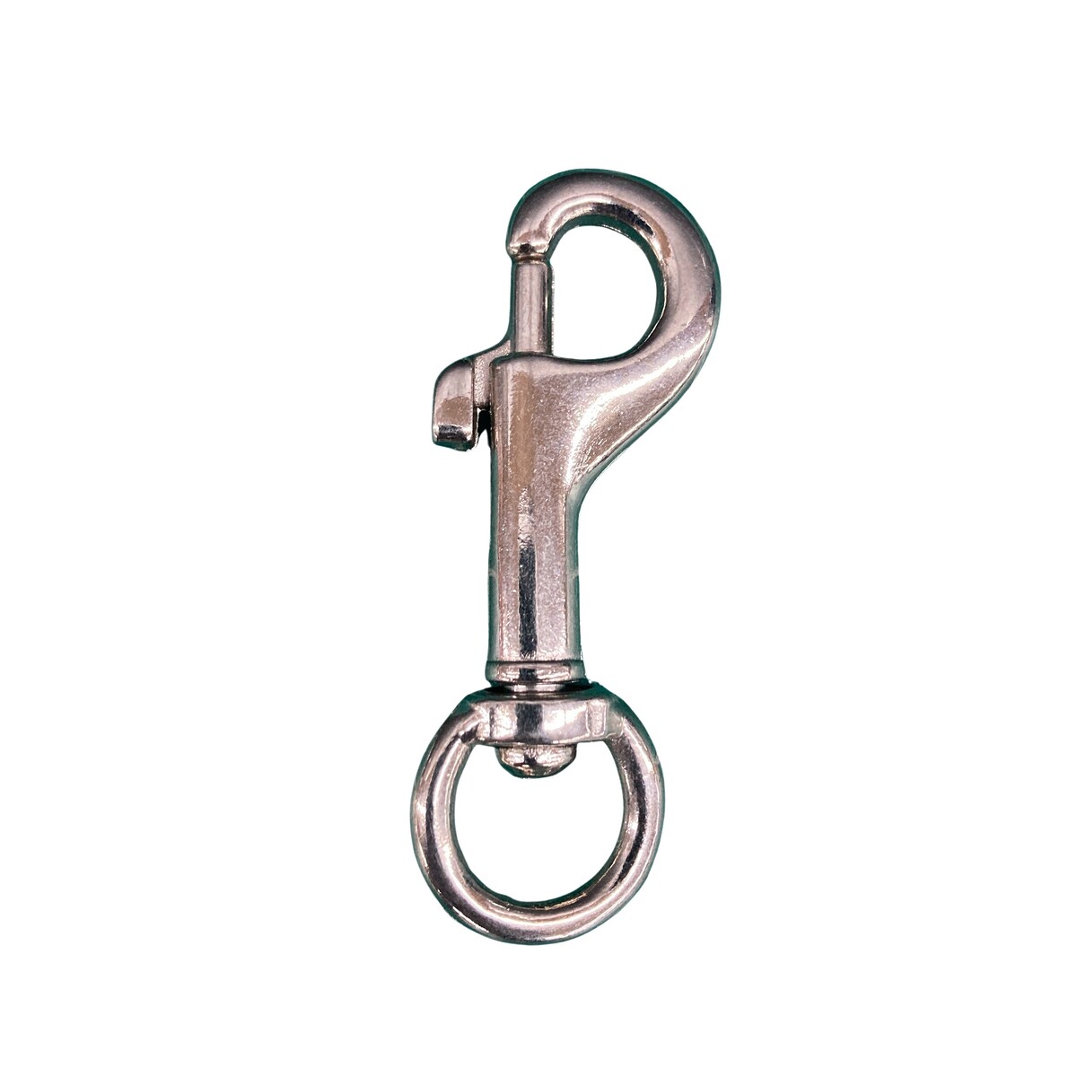 A 3/8″ tiny bolt snap with a swivel in nickel that is great for smaller projects such as leashes. Size denotes the strap width that best fits the bottom loop.