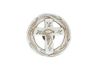 An engraved, antique silver concho with a rope edge. Available in four sizes: 1″, 1 1/4″, 1 1/2″ & 2 3/8″.