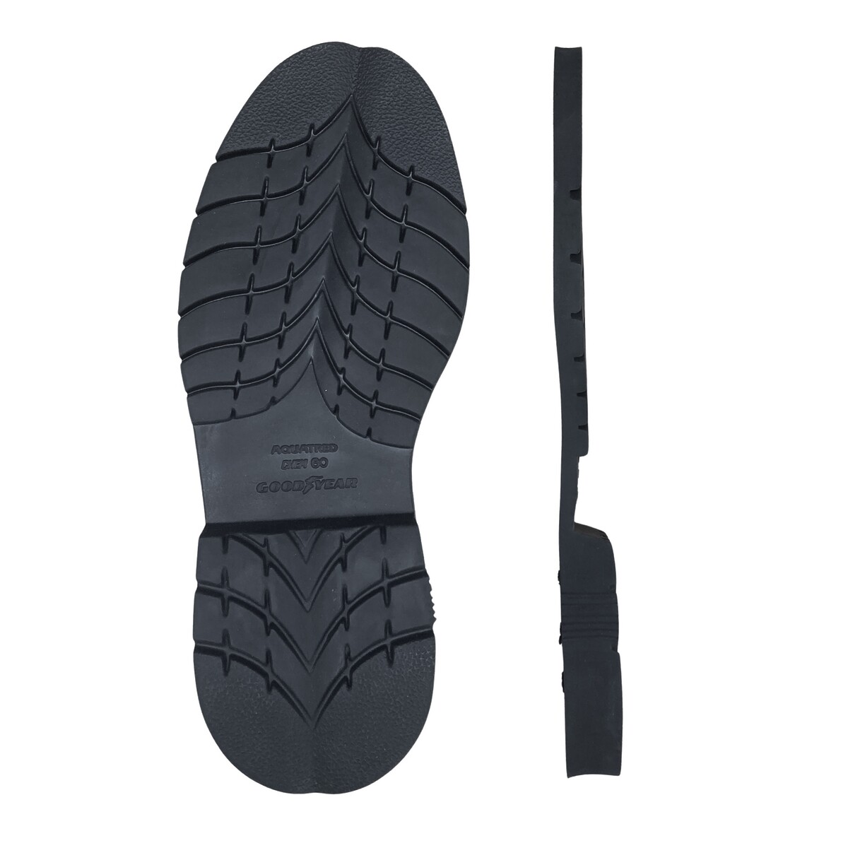 A solid rubber sole based on the famous Goodyear tire tread, this sole is perfect for casual shoes. Traction and nonslip are proven aquatred characteristics.