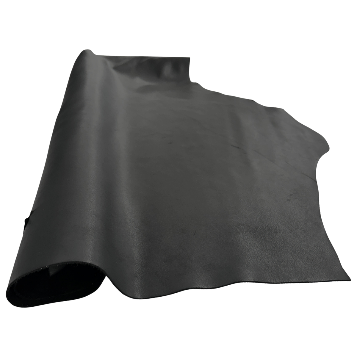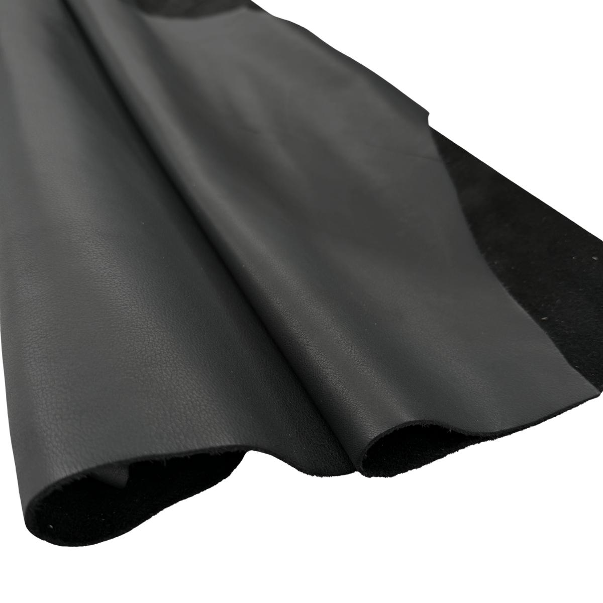 A smooth, very soft and supple, 3 oz black leather. Ideal for making garments, bags, footwear, and more. A very mild pebble grain is present, but could otherwise be mistaken as smooth grain.