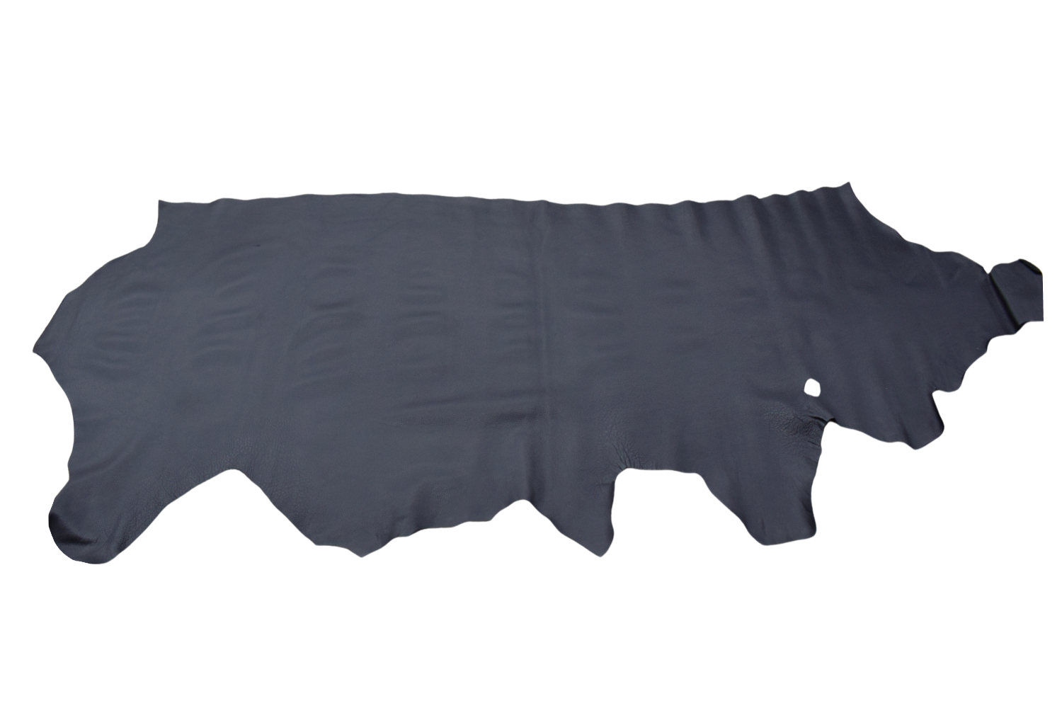 A black pebble grain leather. At 4 ounces thick with a soft body feel, this leather is excellent for making chaps, boot tops, bags and more. The sides are a bit smaller in the 14-18 square foot range, but the leather is excellent quality.