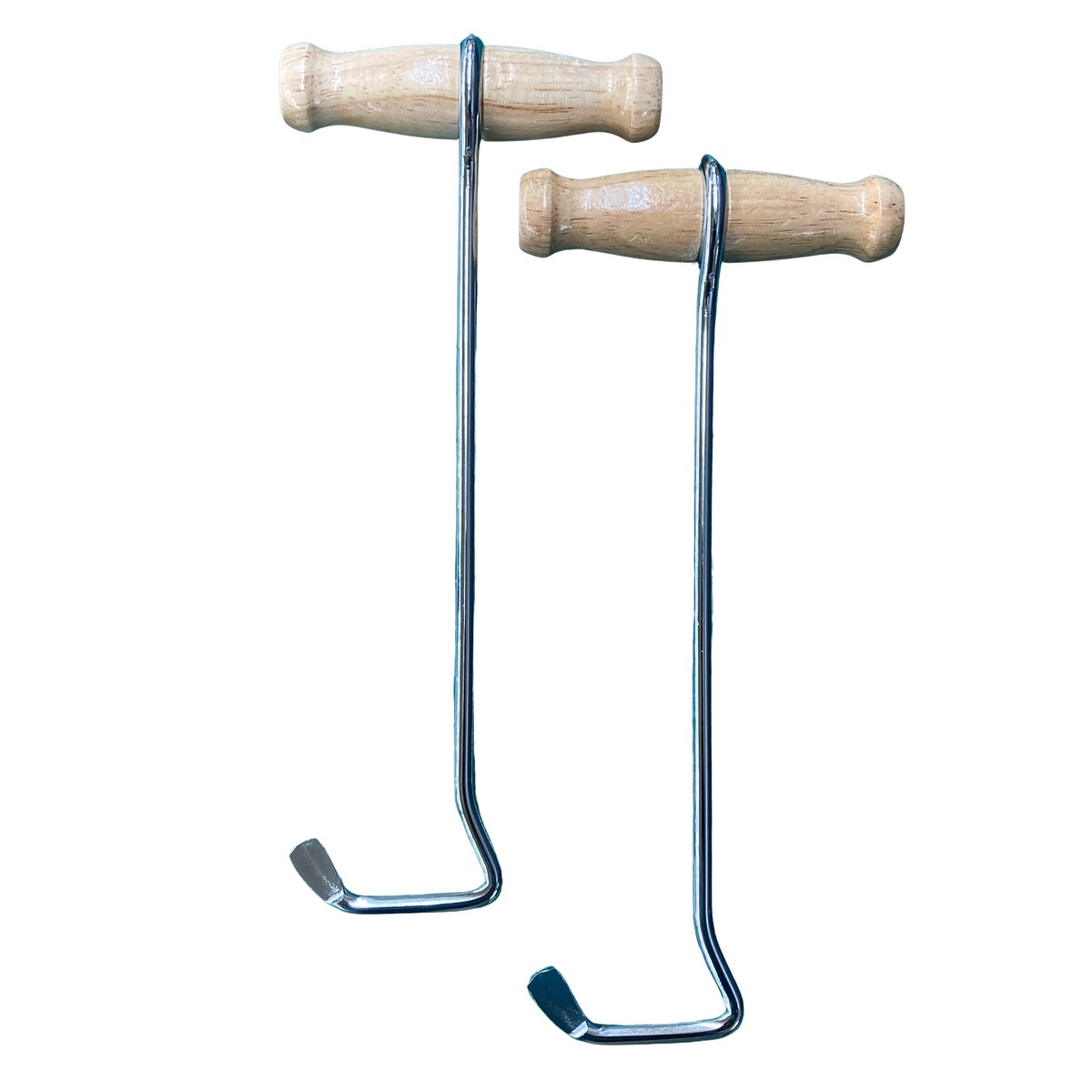 Boot hooks that make slipping your boots on quick and easy, without making you hunch over as much. Measures 8 inches in length.