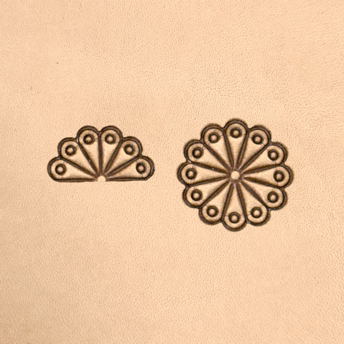 Six and twelve petal border tools with seeds for stamping and tooling leather. Made by Barry King, two styles to choose from.