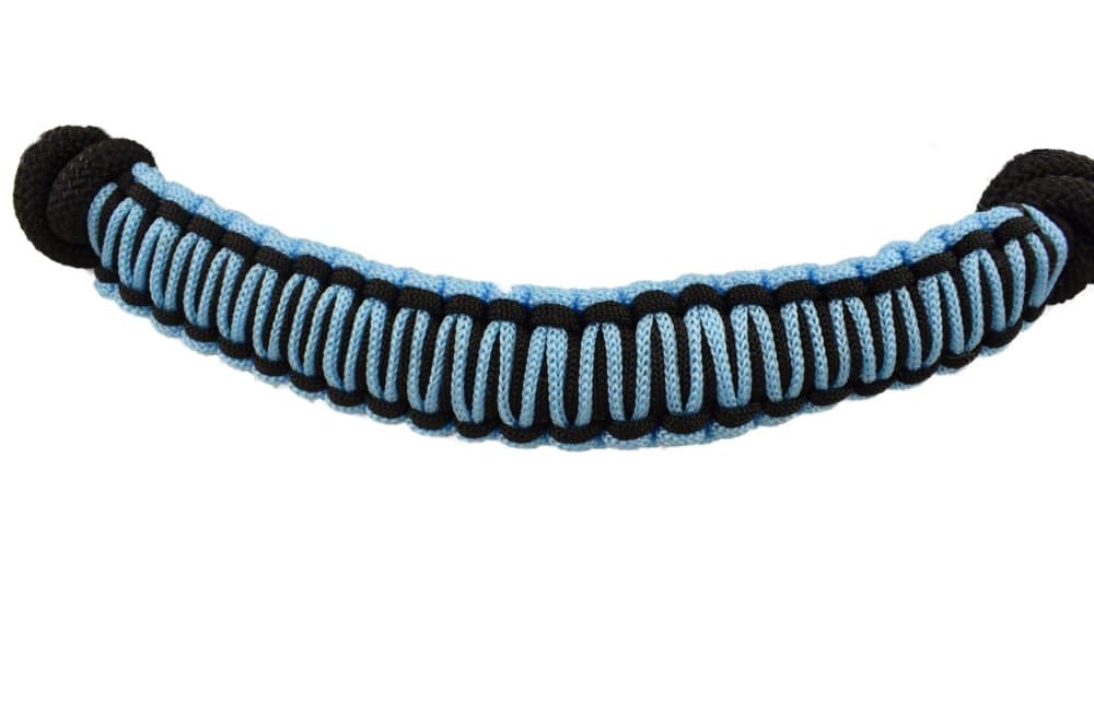 Braided black rope halter with colored noseband. Comes in five different colors: