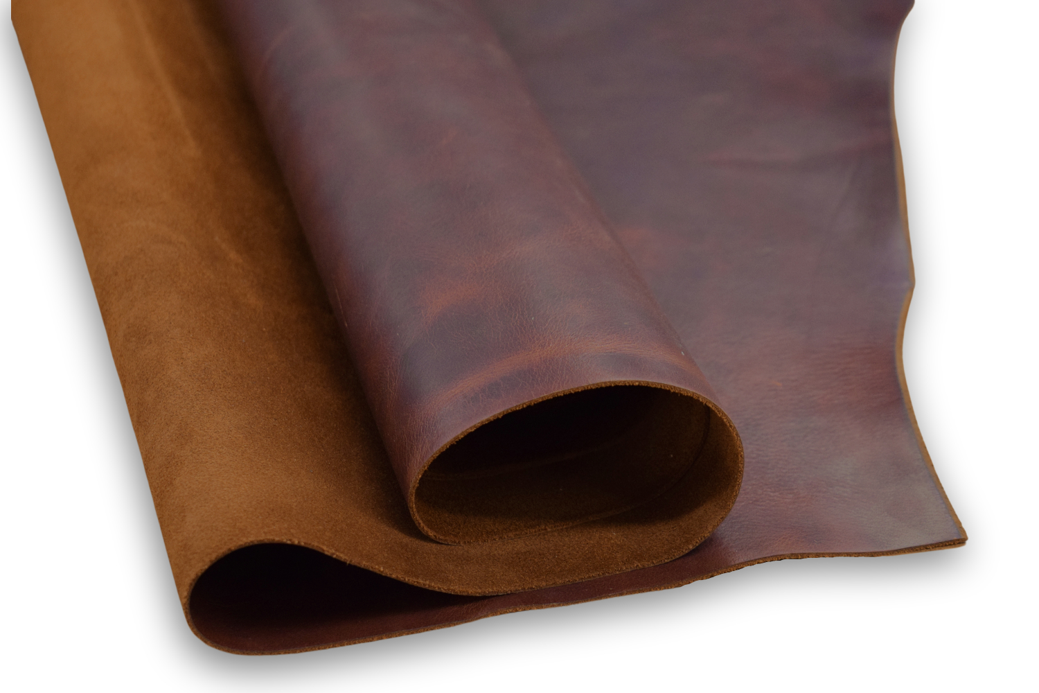 Huge side. Client chose this for a soft side laptop/business bag. Color, texture and pull up on this are awesome, and it is easy to cut accurately despite its buttery soft texture. I used dyed vegtan for stress points and straps and the color is a perfect match for Fiebings light brown