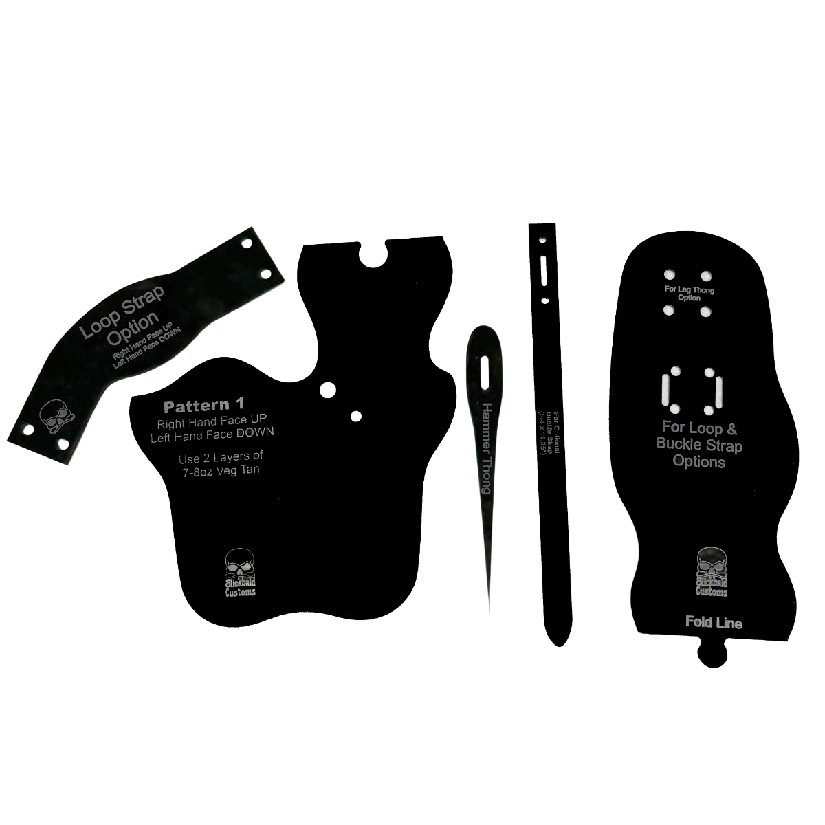 An acrylic template pack for making a western loop, cowboy “B-Movie” 4 5/8 barrel holster. Made by Chris Andre with Slickbald Customs, you’ll have the template you need for easy, repeated use. Be sure to grab the Cowboy Master Pack as well for other patterns and step-by-step instructions for making your holster!