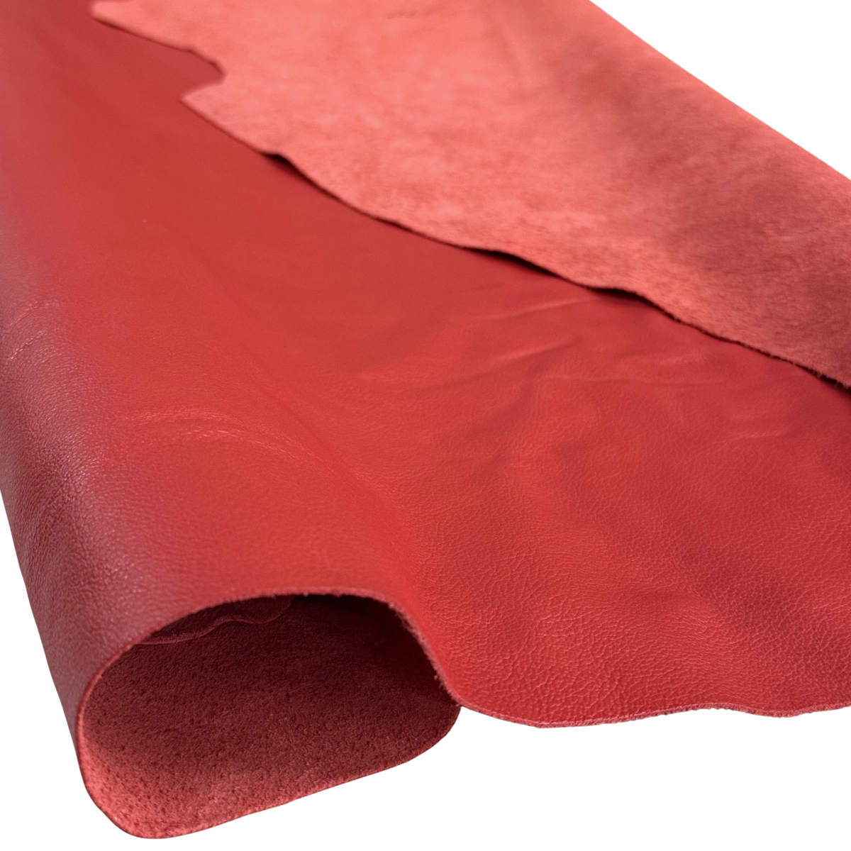 Lipstick Red Doral leather is one of our permanent lines of chrome tan leather. A thin leather, Doral will work well for moccasins, covers, lining and other projects.