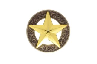 A beautifully designed concho with engraved silver and a gold star. Available in five different sizes.
