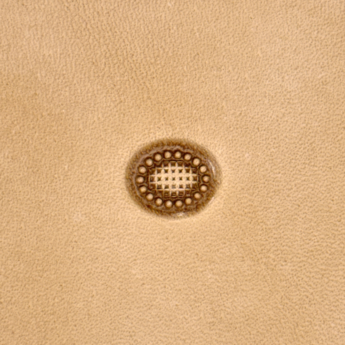 18 seed oval checkered flower center design for stamping and tooling leather. Made by Barry King, three sizes are available to choose from.