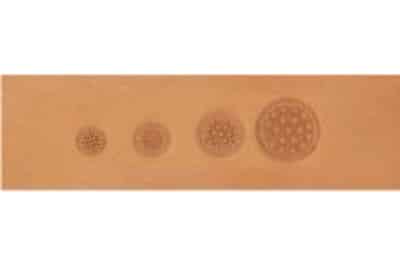Cluster flower center design for stamping and tooling leather. Made by Barry King, four sizes are available.