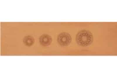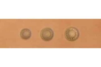 Offset seed flower center design for stamping and tooling leather. Made by Barry King, four sizes are available to choose from.