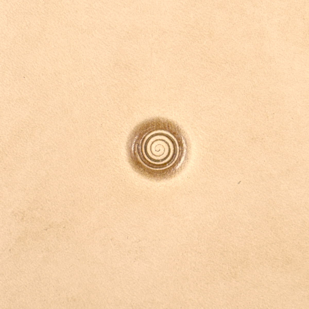 Spiral flower center design for stamping and tooling leather. Made by Barry King, three sizes are available to choose from.