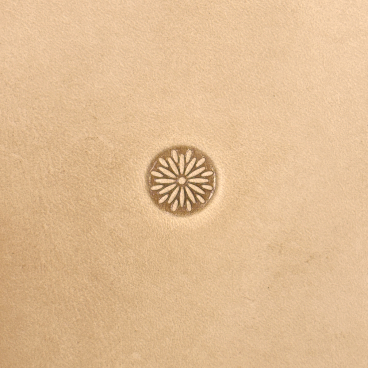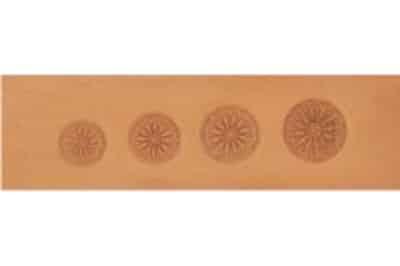 Sunburst flower center design for leather stamping and tooling. Made by Barry King, four sizes are available to choose from.