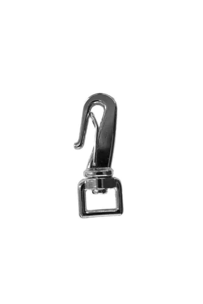 Nickel plated snap with a long “gooseneck” fastener.? Designed to quickly and easily snap on, while still being incredibly secure and reliable. Ideal for dog leashes.