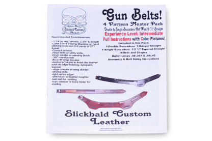 A 4 pattern pack with full instructions and pictures on how to craft a leather gun belt. Patterns include a double and single buscadero, old west, and 2 1/2″ straight gun belt.