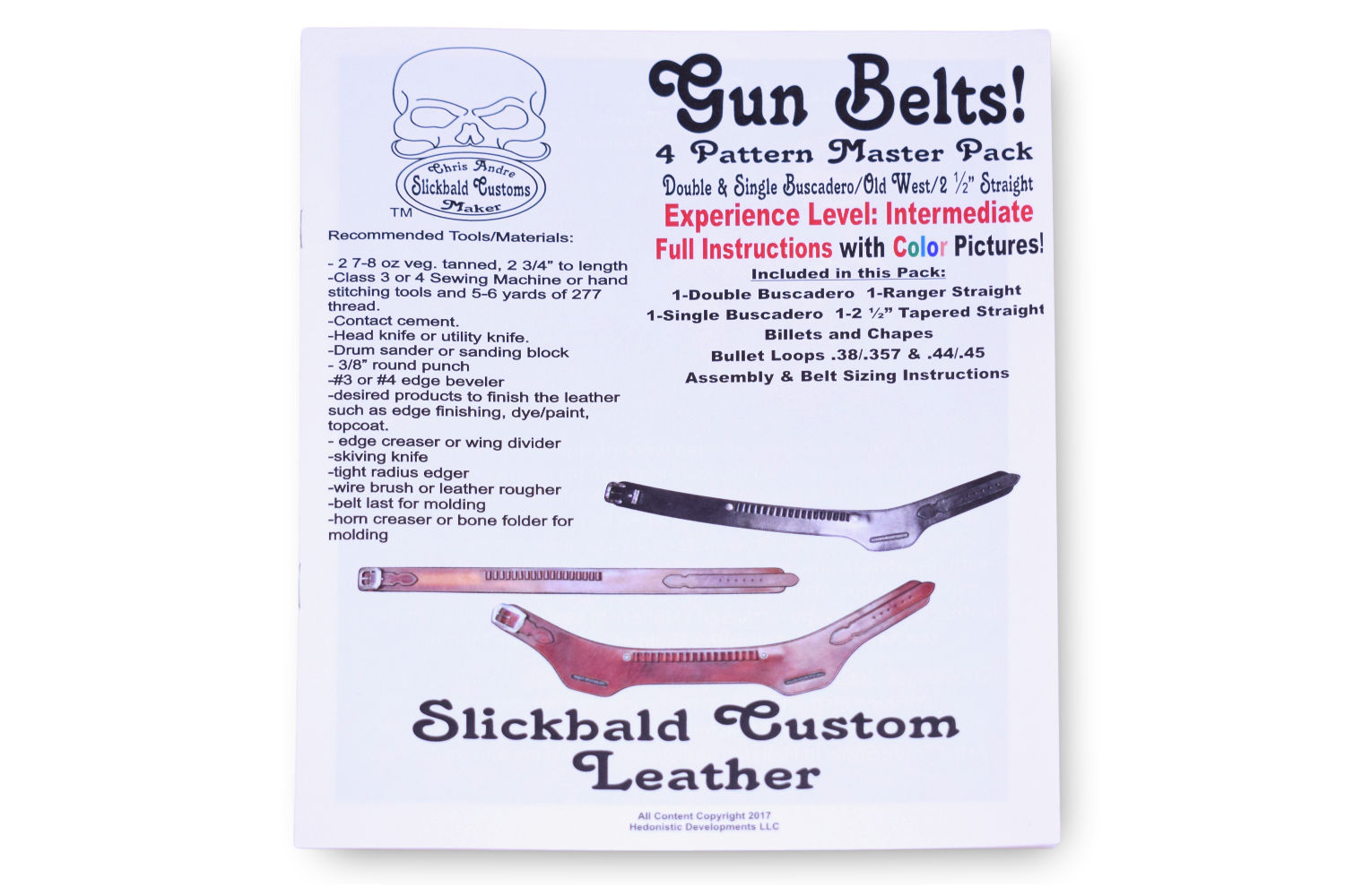 Patterns are by Chris Andre, of Slickbald Customs. Chris is a multi-award winning leather crafter, and teaches classes across the world. Rest assured you will be learning from the very best!