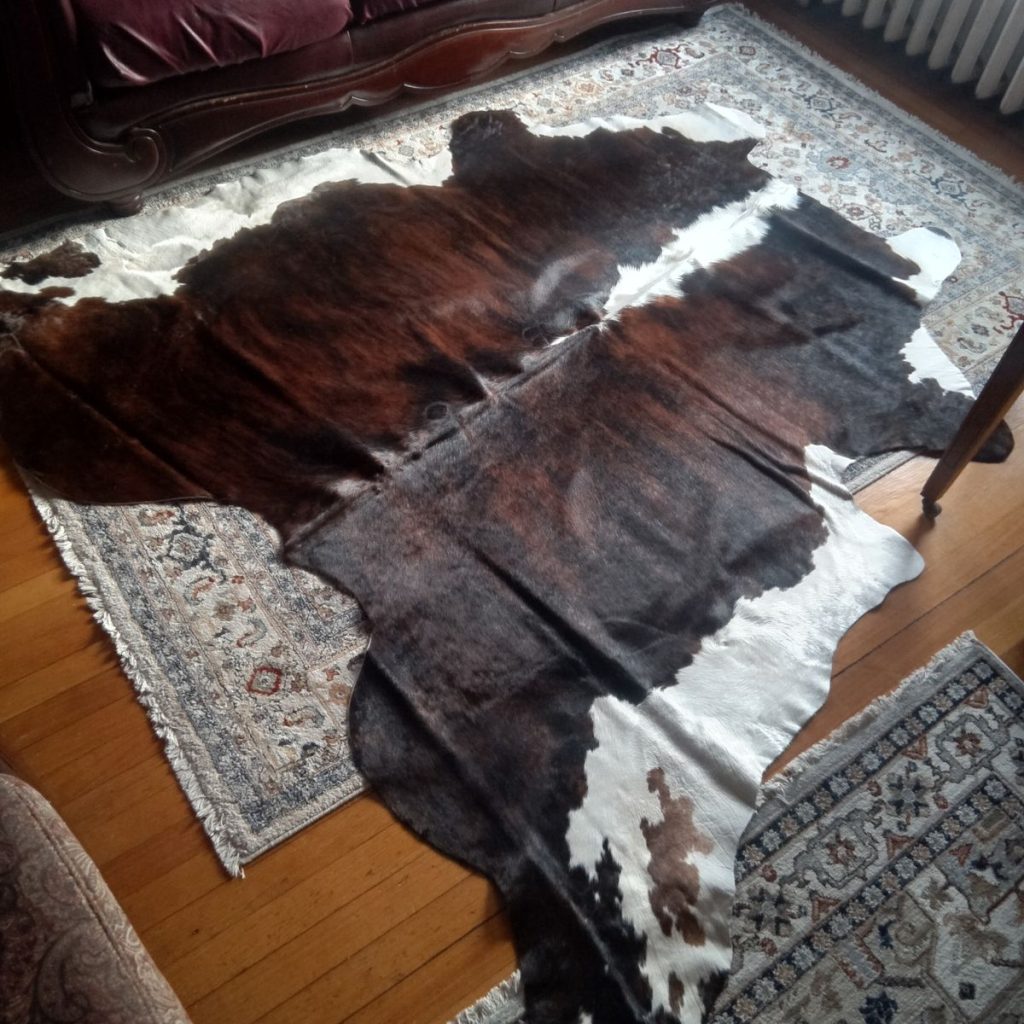 This cow hide is so nice it is being used as a bedspread. It doesn’t smell, is soft and warm.