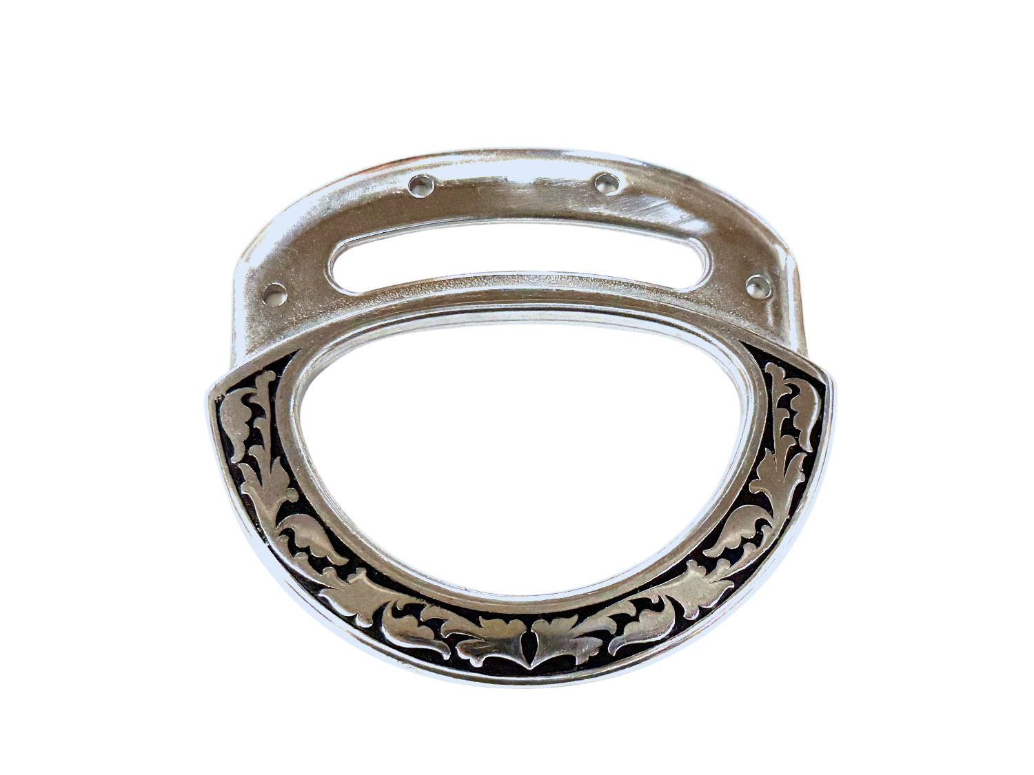 Jeremiah Watt floral dual purpose rigging plates- they are so attractive when installed. You can build a classy looking Inskirt or Flat Plate style rigging with these plates. You can also use these plates in a front or rear position on your saddles. They install easily, made of stainless for years of service and strength, holes fit #9 rivets. Sold in pairs.