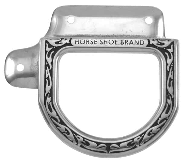 Jeremiah Watt floral rear flat plate dee, this well made stainless piece of hardware is designed to be installed between two layers of leather. Our Flat Plate hardware is square and uniform, anything fit on the one side will fit on the opposite side. Our rivet holes fit the standard #9 rivet. Sold in pairs- 1-left and 1-right dee.