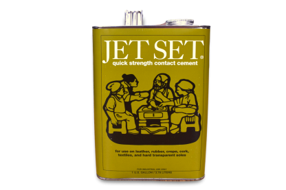 A contact cement for bonding leather, rubber, crepe, cork and more. Sets in 10-15 minutes on leather, and a little longer on other materials. Available only in gallons. Please note that gallons of cement do not qualify for free shipping.