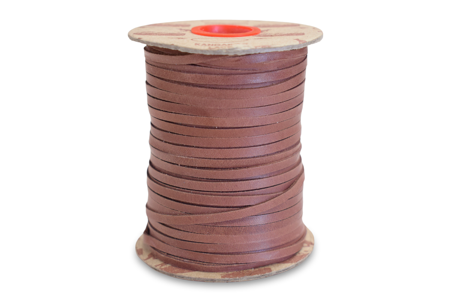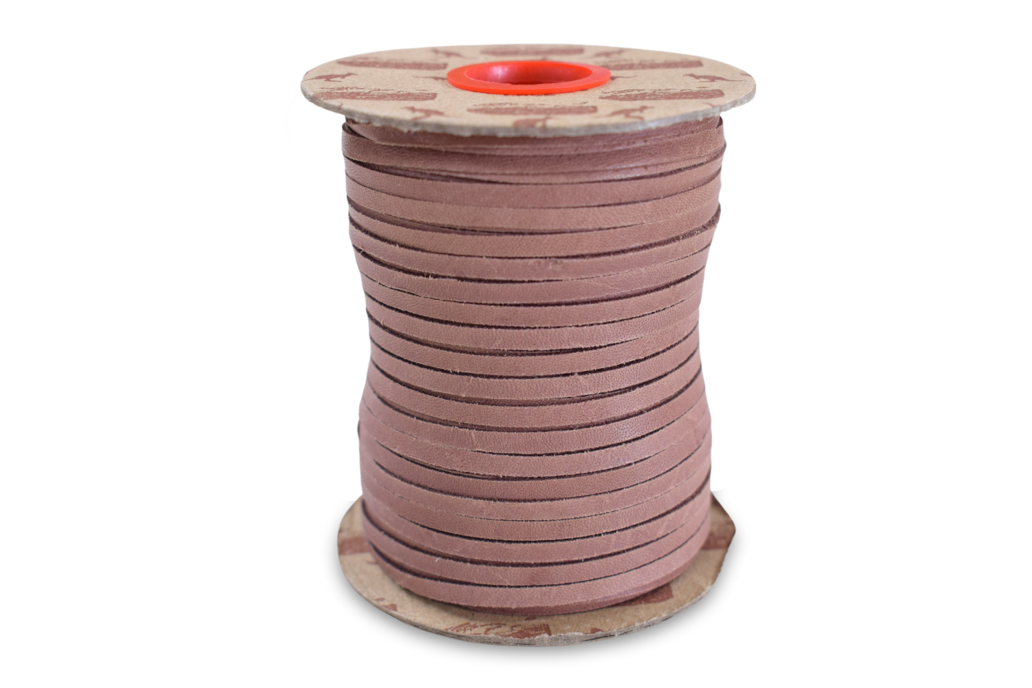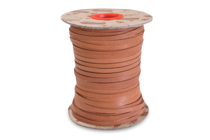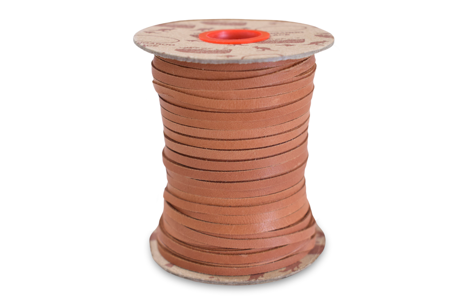Kangaroo leather lace in a wide assortment of colors. Ideal for projects that require the strongest leather lace available. Choose from a 3 mm (approx. 1/8″) or 6 mm (approx. 1/4″) width. Spools are 50 meters in length, or about 55 yards.