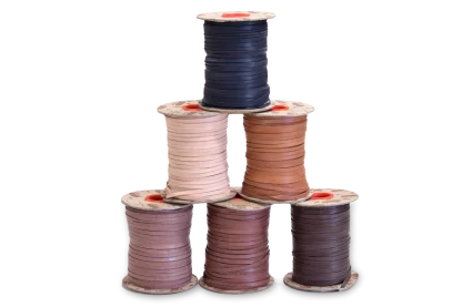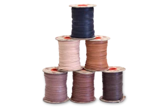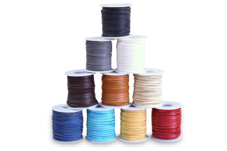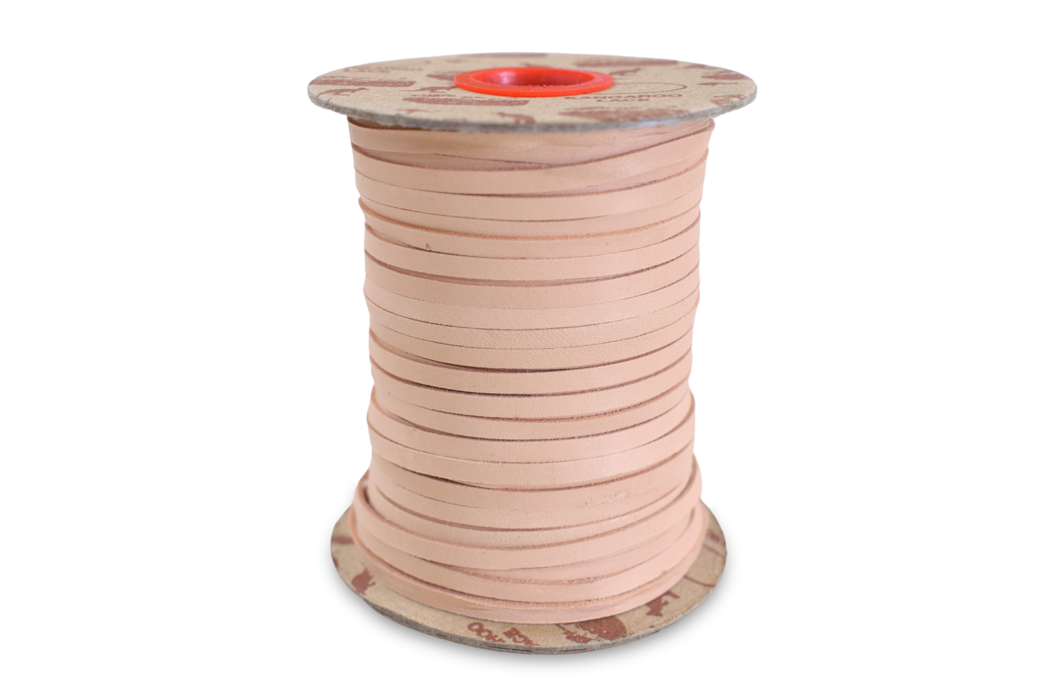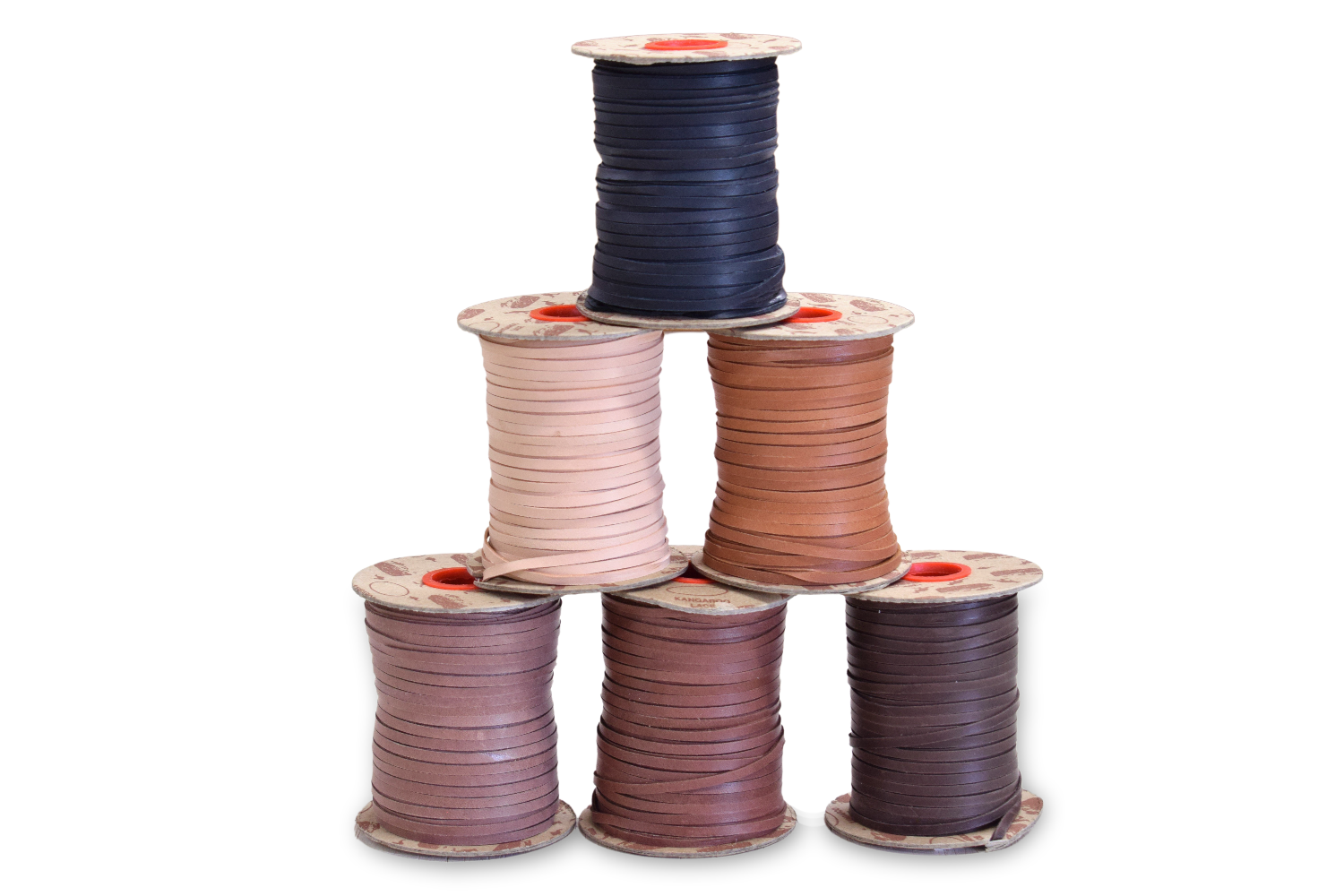 Kangaroo leather lace in a wide assortment of colors. Ideal for projects that require the strongest leather lace available. Choose from a 3 mm (approx. 1/8″) or 6 mm (approx. 1/4″) width. Spools are 50 meters in length, or about 55 yards.