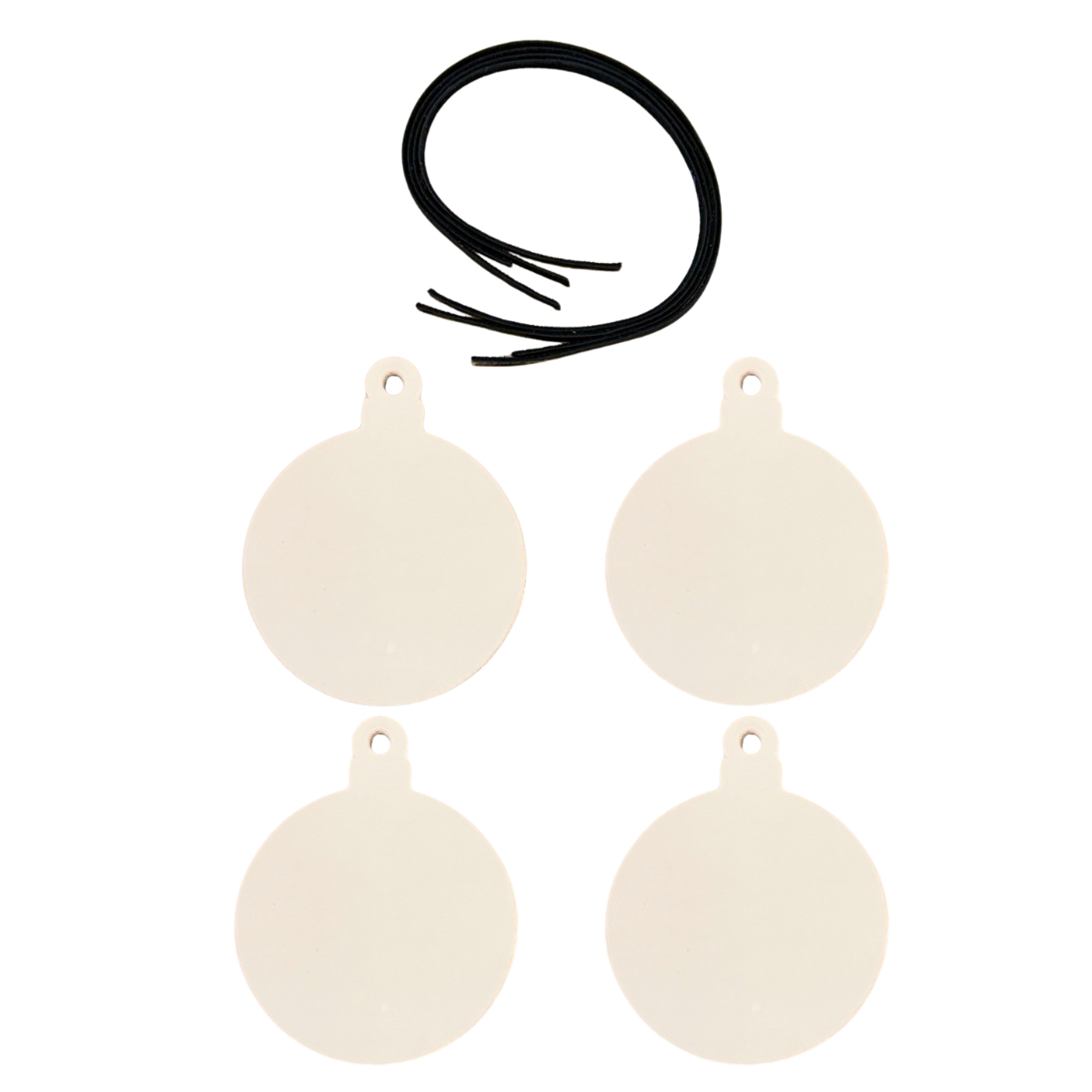 A set of pre punched leather ornaments, ready for the Christmas tree. Use Fiebing’s dye to make them whatever color you wish, or Angelus acrylics to paint them. You can even use stamping tools to stamp out a design like you see on other leather products! Please note that dyes and stamps are sold separately.
