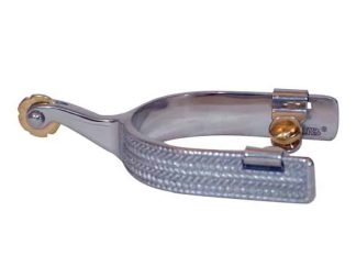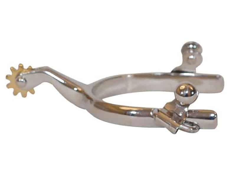 Metalab western all around spur. A nickel plated finish with nickel plated malleable iron, and a solid brass rowel. A band width of 1/2″, shank length of 1-5/8″ and a 10 pt., 7/8″ rowel. A level 2 spur it suits any type of rider, perfect for everyday riding.