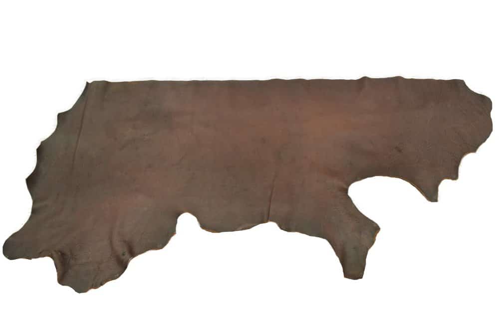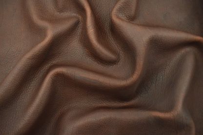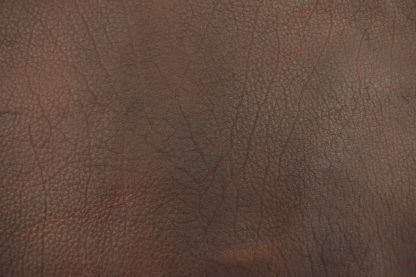 A distressed, bison leather in dark brown. Maintains a waxy, glossed finish with rich, pull up undertones. At 5 to 6 ounces thick (5/64″ – 3/32″) and soft to medium in temper, these sides are perfect for bags, packs, straps, shoes and more. Available in cut pieces.