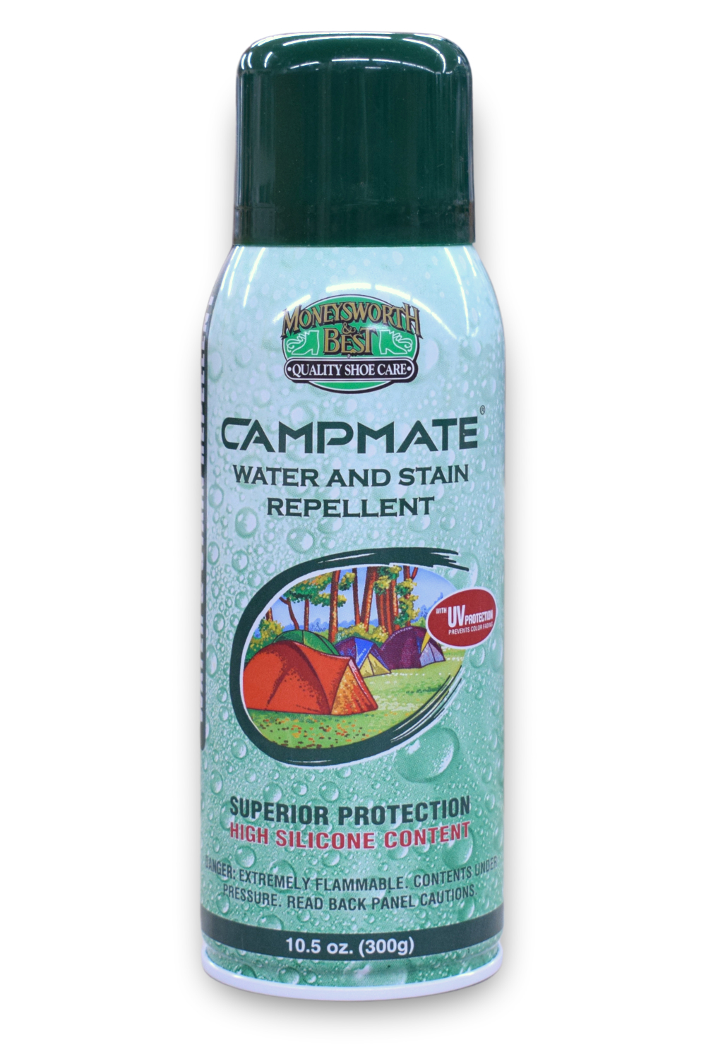 Moneysworth & Best Campmate is specially formulated with high silicone content to provide ultimate long lasting protection from the elements. Effectively repels water and soil on all leather, suede, fabric and canvas. Ideal for use on all camping gear, tents, boat and car interiors, footwear and garments. All weather protection.