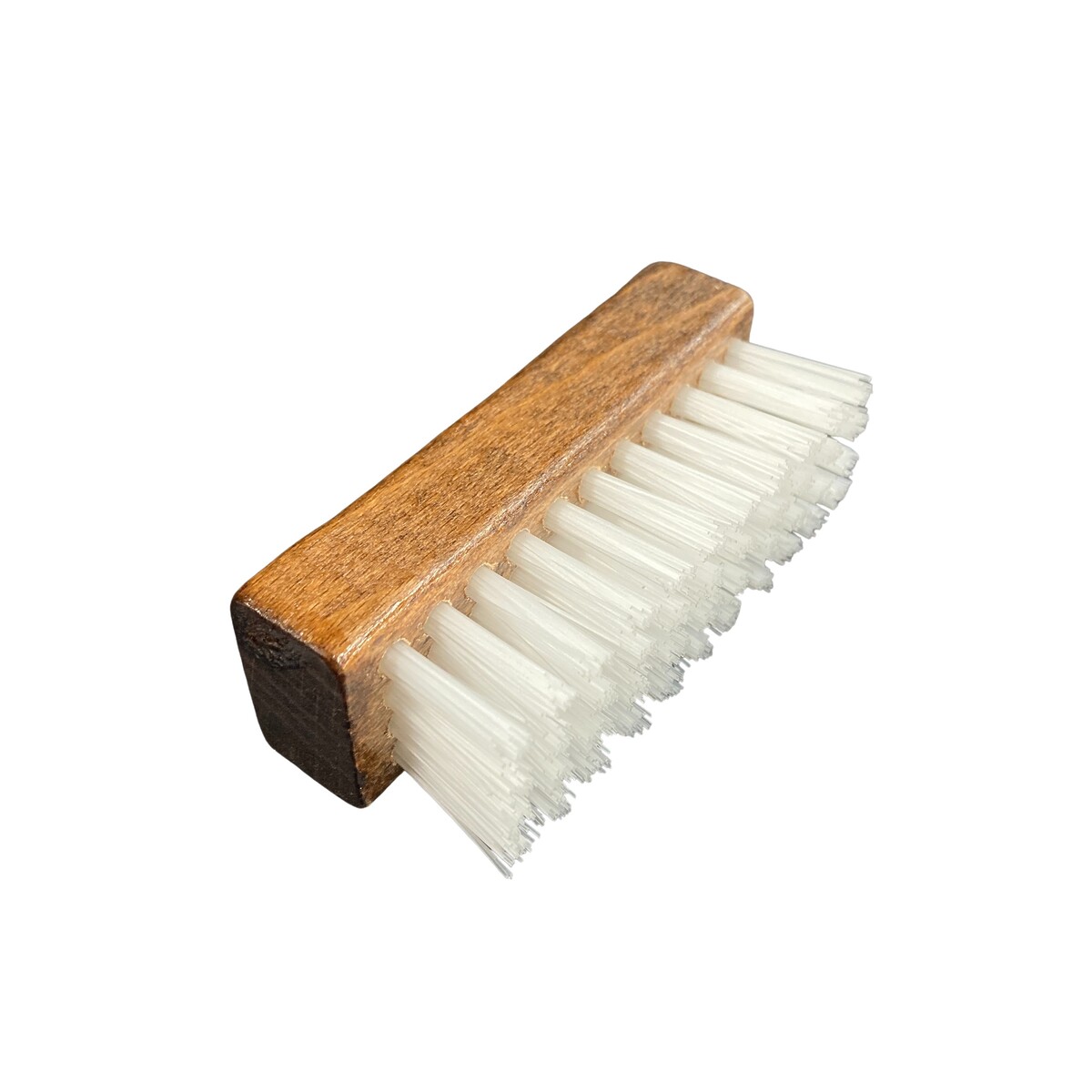 A necessary accessory for suede shoes, boots, bags, saddles, and other leather goods where a soft finish is desired. Less harsh bristles than the brass suede brush. Just under 3″ long with a wooden handle.