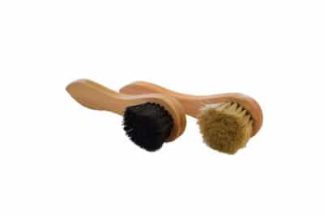 For applying shoe polish, saddle soap and other leather care products. A vital accessory for any owner of leather goods who wants to use more than just a paper towel or cloth. Available in black and natural. Comes with a wooden handle.