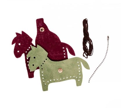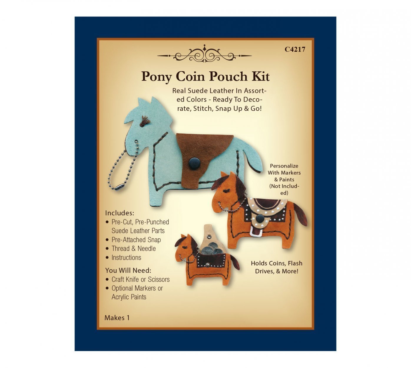Saddle up and have fun! Personalize your pony with colorful permanent markers and acrylic paints. Bridle with a locking key chain. Then stash your coins, flash drive or other treasures inside the pouch.