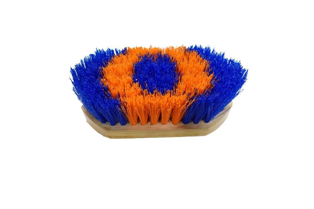 PonyPals Pocket Brush is made with a kiln-dried, double-lacquered, curved-back hardwood brush block with colored polypropylene fibers. The brush head is about 6 3/8 in length. The shape lends itself to easy handling. Since it is a little shorter than the standard brush head, it fits into pockets and small hands easier. There is a random assortment of colors and patterns. Makes a great medium to heavy general-purpose grooming brush.