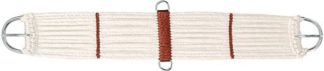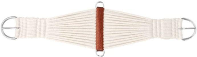 A 27 strand ranch roper cinch with nickel plated buckles. Double woven white rayon cinch with nylon wrapped center. Extra width is provided for the strength needed when roping. Cinch features 3″ nickel plated straight pull buckles and 1″ dees. Sizes 28″, 30″, 32″, 34″, 36″.