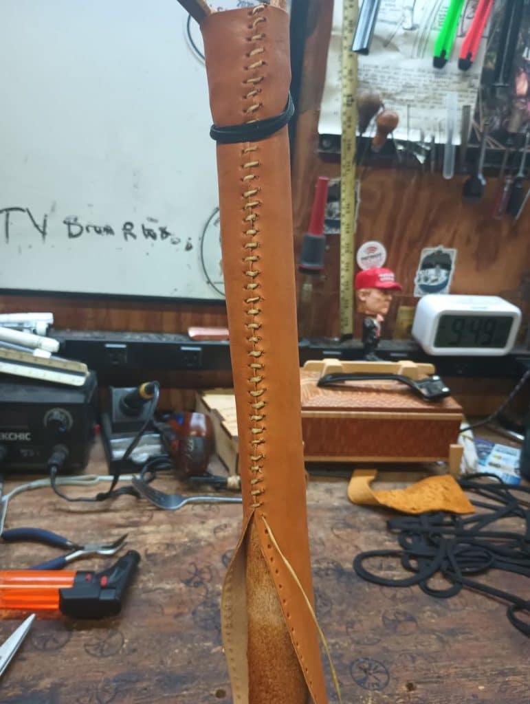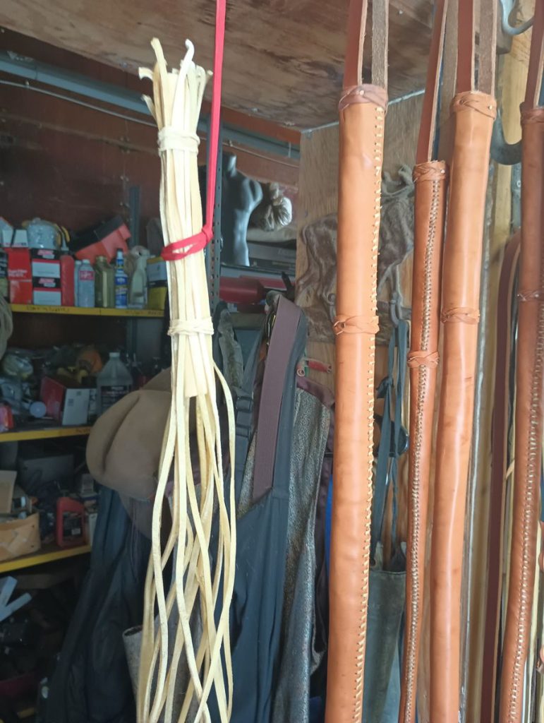 Using the rawhide strands for the belly of a postillion crop for driving a team pulling reinactment canons.