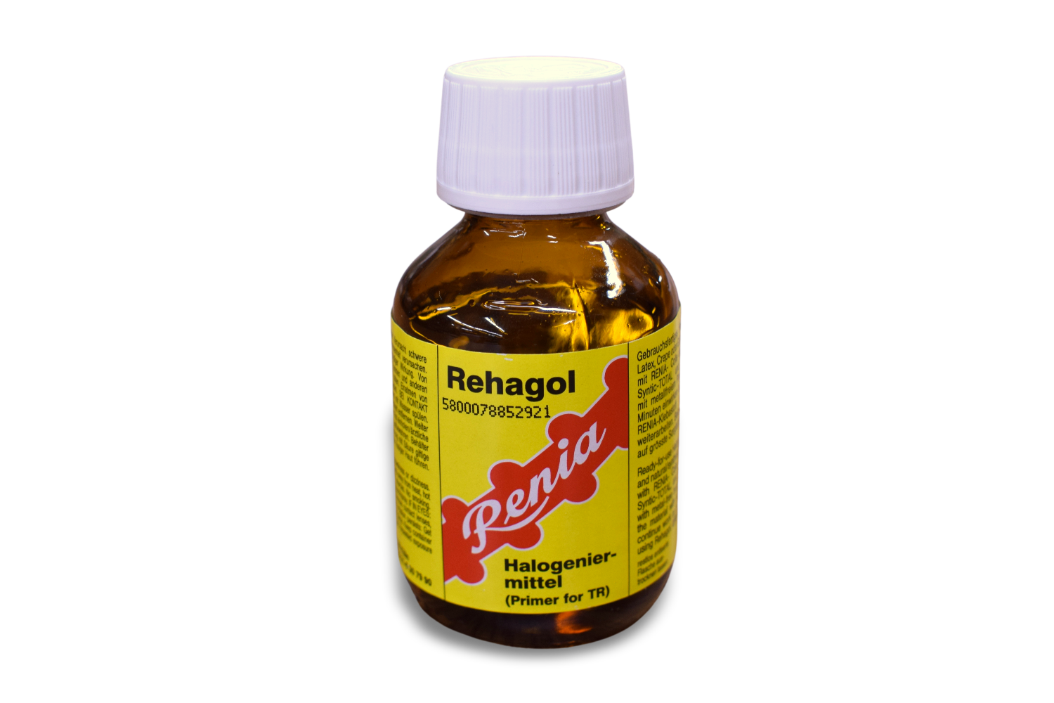 Renia Rehagol TR primer helps bond thermoplastic rubber materials together. Pre-coat the surface of the material with Renia Rehagol, wait 15 minutes, and then apply Colle De Cologne. Comes in a 8.5 oz glass bottle.