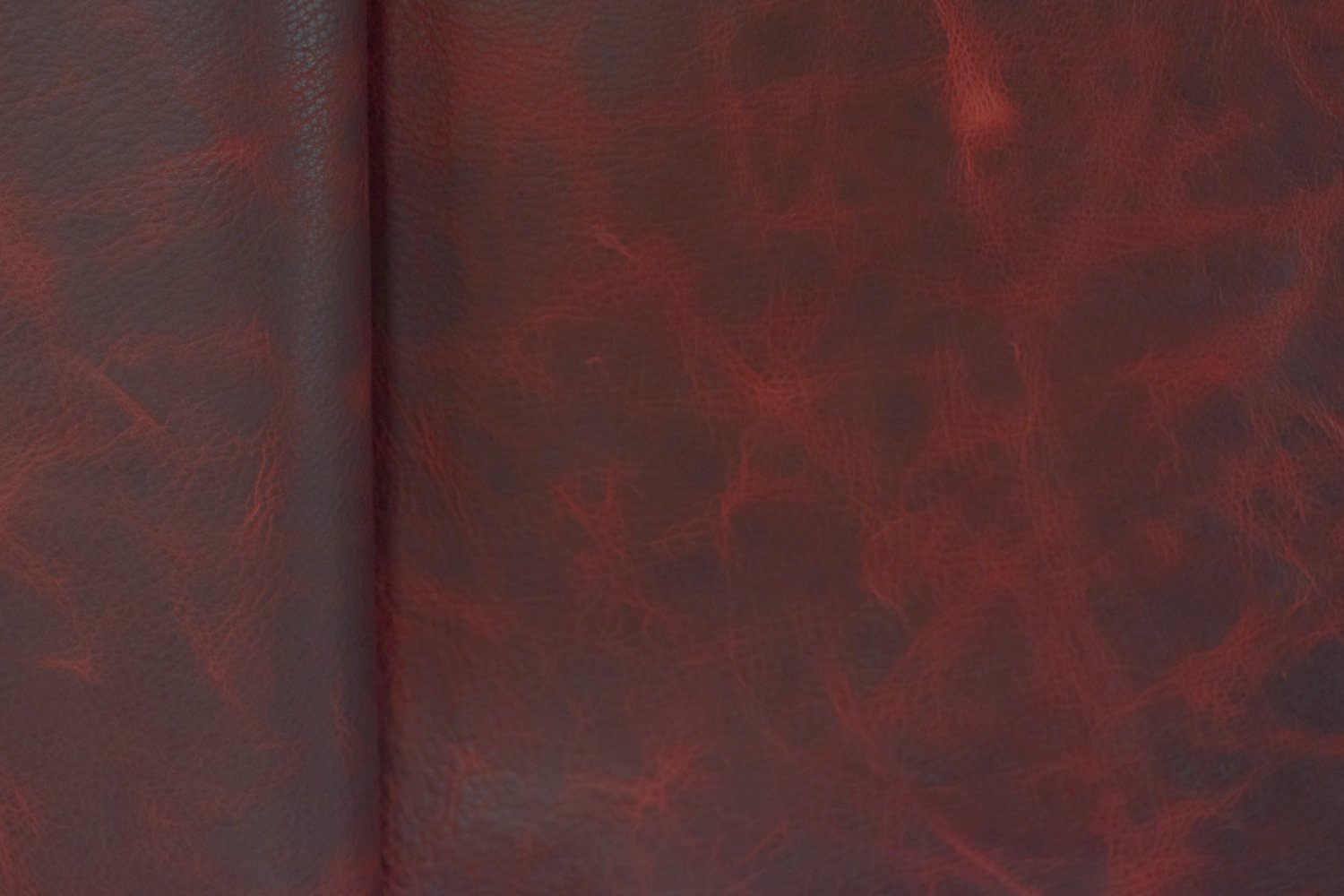 A deep red leather with a milder pebble grain. Pull up is present, with a bright red color that emerges when bent or stretched. Soft to the touch, yet hardy and durable. The Rushmore leather line is meant for anyone looking to make a high end product that is sure to impress clients, friends and family.