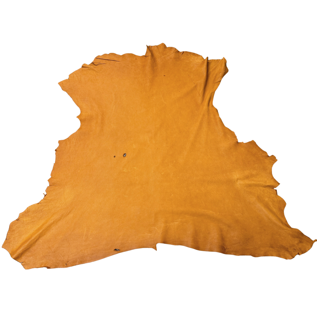 Deerskin leather in a rich, saddle-gold color. Excellent for making moccasins, clothing, traditional Native American items and more. Tanned right here in the US. It is possible for some pieces to have marks or holes, but will largely be very clean.
