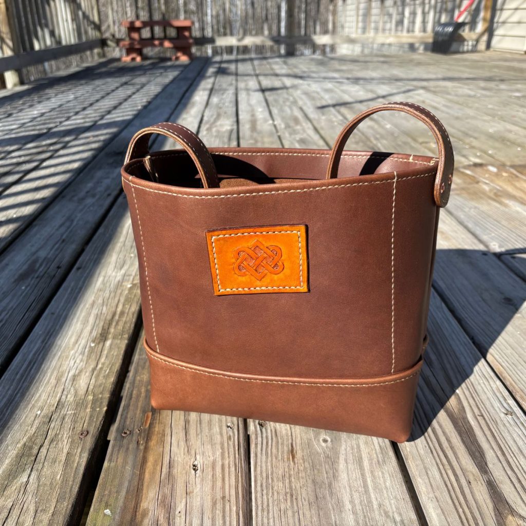 An oil tan, medium brown leather. At 5-6 ounces thick with an amazing feel, this leather is great for making bags, packs, straps, chaps and more.