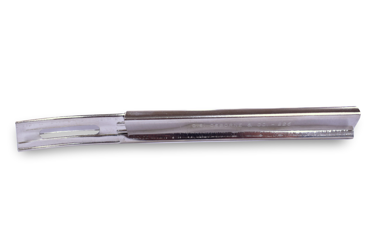 The 925 skife knife from Osborne makes a remarkably easy job of skiving leather as well as other materials. An essential tool for restoration work or altering a piece of leather to a desired thickness. Fitted with a special razor blade that can be replaced.