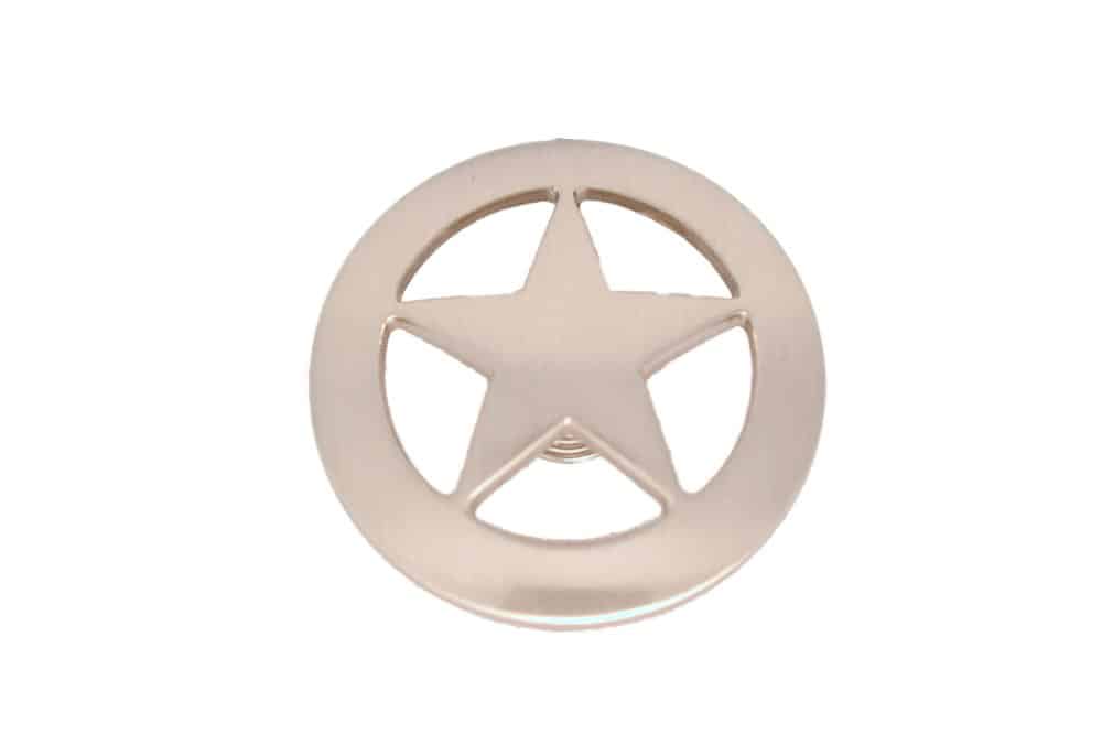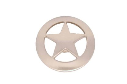 A smooth star concho with no engravings. Available in five different sizes: 3/4″, 1″, 1 1/2″, 1 3/4″, & 2″.