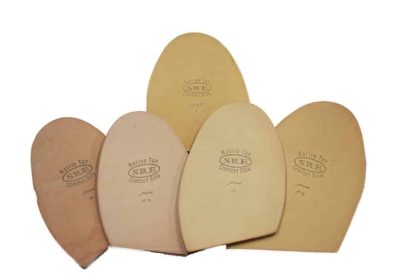 Firm, high quality leather half soles from SRE. An essential item in boot and shoe making, as well as in repair. These half soles measure approximately 7 1/2″ long by 5″ wide, while you have the option of 4 different thicknesses: 4.5 (5/32″), 5 (3/16″), 5.5 (7/32″), or 6 (1/4″). Sold by the pair.