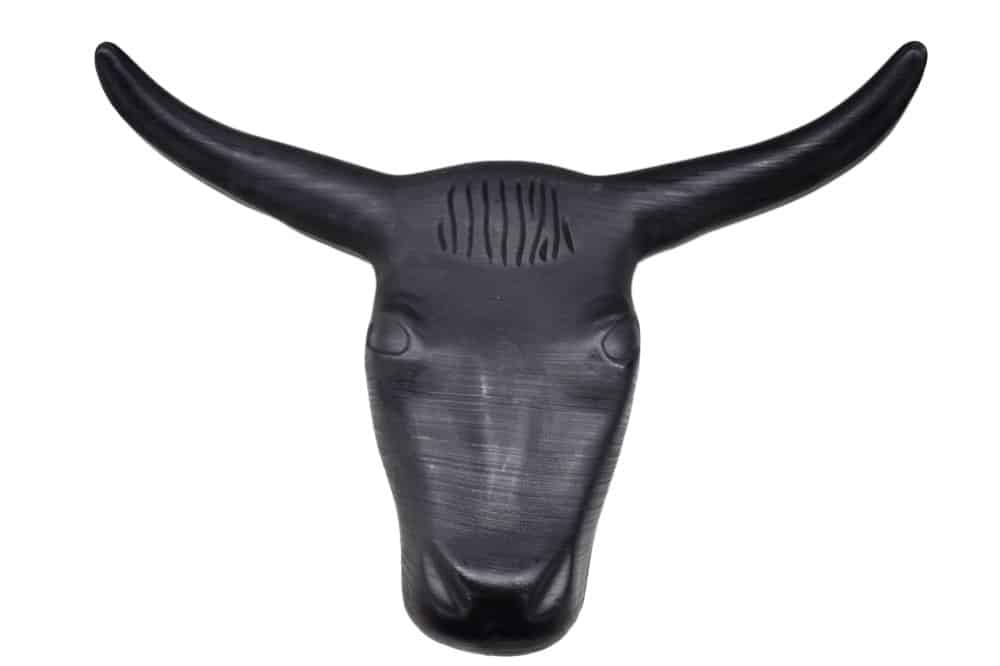 A hardened plastic steer head for roping practice. Measures 22″ wide at the horn tips. Comes with two steel mounting rods.