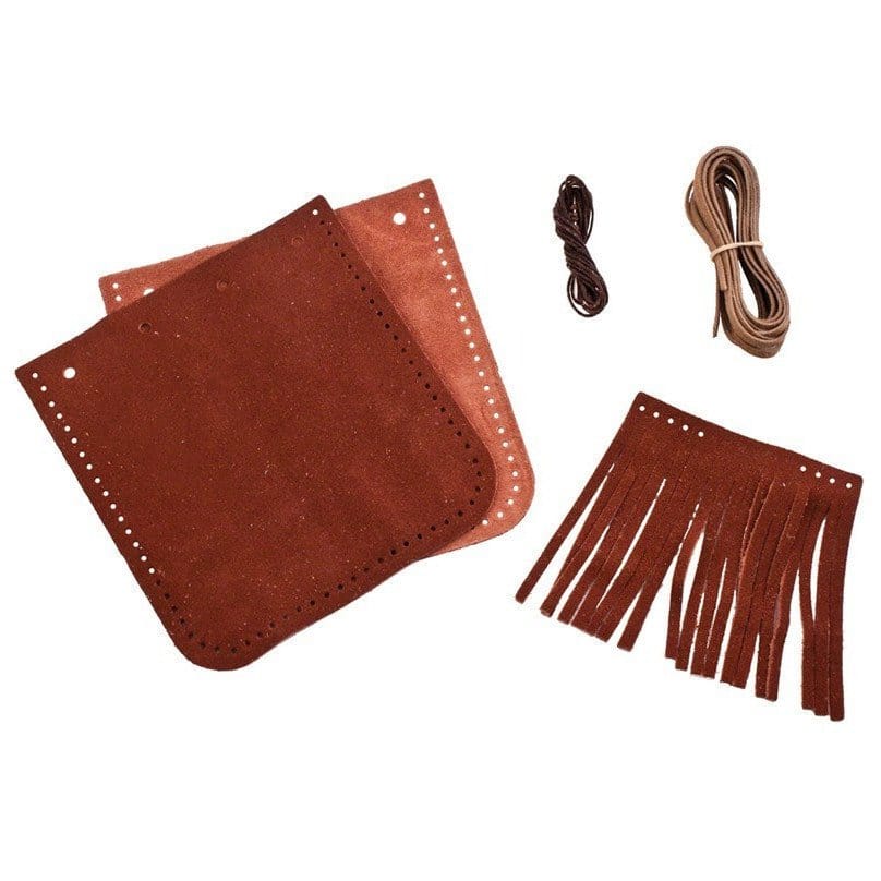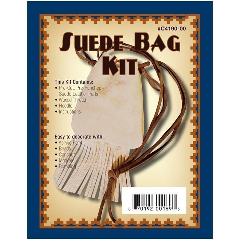 The popular fringed bag from Realeather is small, but large enough to hold your essentials. Leave it plain or decorate with markers and acrylic paints. Kit contains pre-cut, pre-punched suede parts, fringe, waxed thread, needle, lace and instructions.