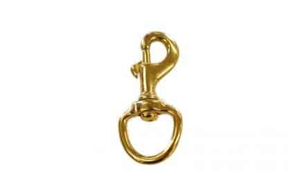 A bolt snap with a swivel in brass. Available in five sizes.