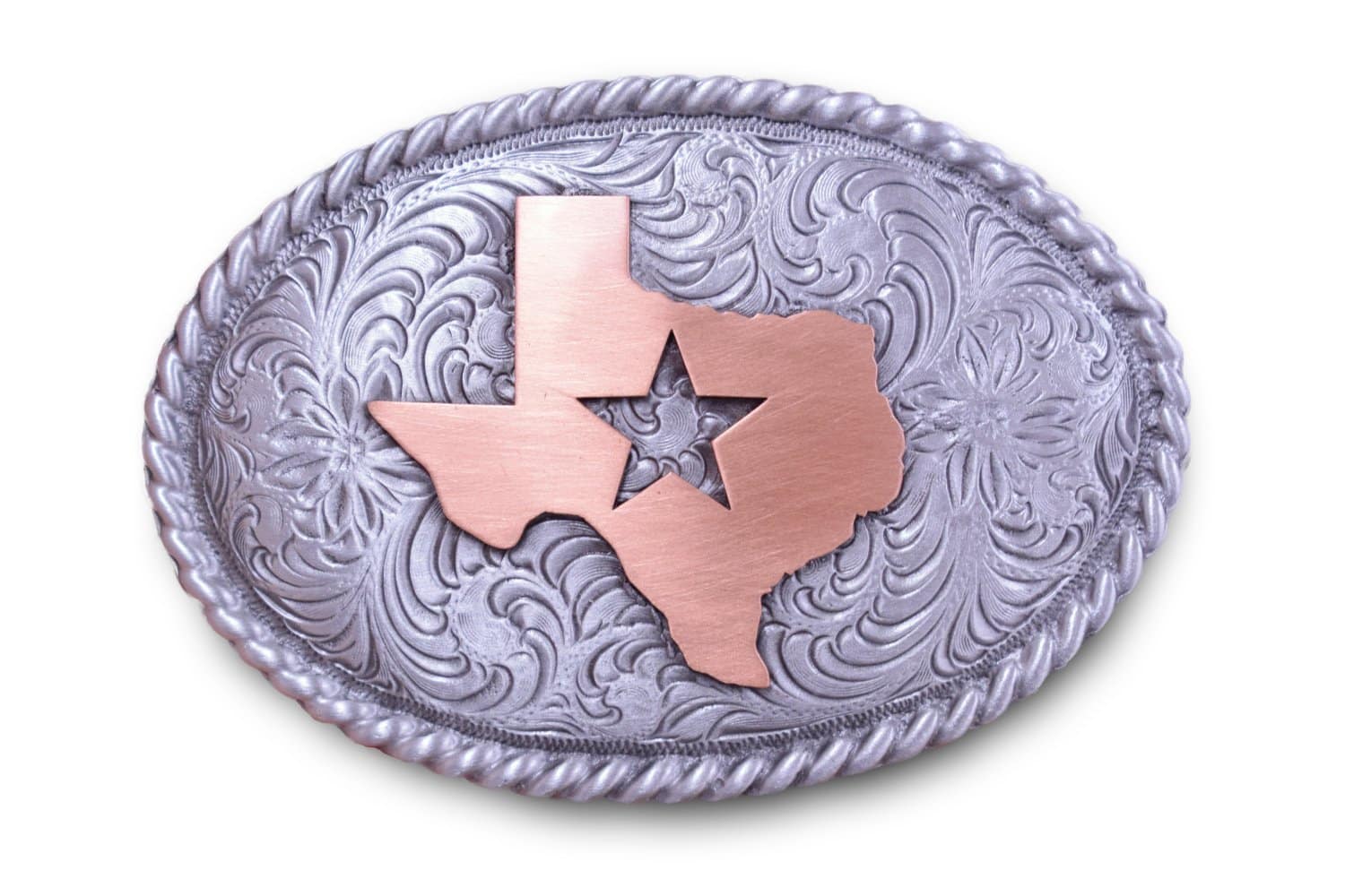 Introducing the Texas Buckle featuring a beautiful copper Texas star. This buckle is a perfect accessory for anyone who wants to showcase their love for the Lone Star State. The buckle is made with high-quality steel, ensuring its durability and long-lasting nature.
