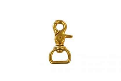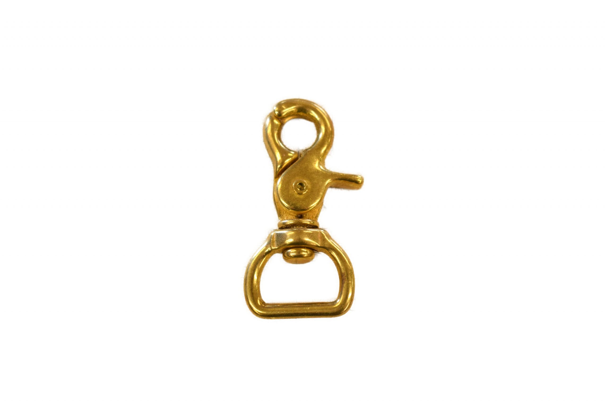 A trigger snap, also known as a scissor snap, in brass. Square eye, available in three sizes.