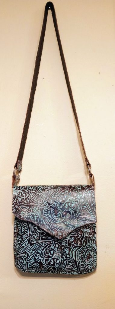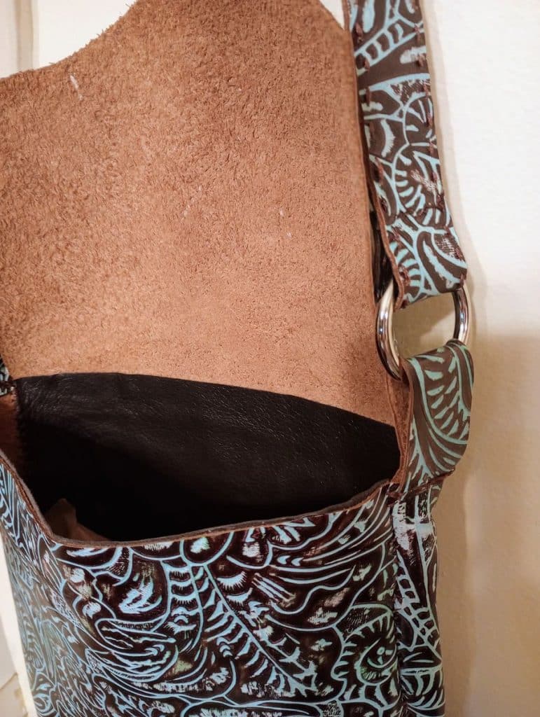 Love this pattern, I have a customer who wanted a purse and matching checkbook, I showed her the tooled turquoise leather and she had to have it! I used the farmed dark brown deerskin to line the purse, strap and make a pocket for checkbook , customer was very happy and I’m glad to know I’m using quality leather